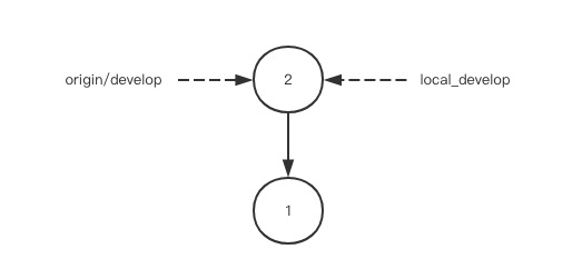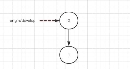 假设此时远程的origin/develop分支上已经有两个提交。,所以我们查看远程分支的日志(git log origin/develop)可以看到提交的树状图如下: