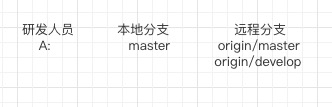 假设我们现在是A研发人员,此时本地分支是master,然后远程有两个分支:origin/master,origin/develop。此时我们接到一个任务,我们要在develop分支上开发一个功能,所以此时我们要切换分支。