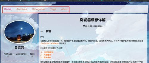 以我的博客为例,很多网站会有这样的布局,头部会有一个导航栏,每次点击页面会切换。
