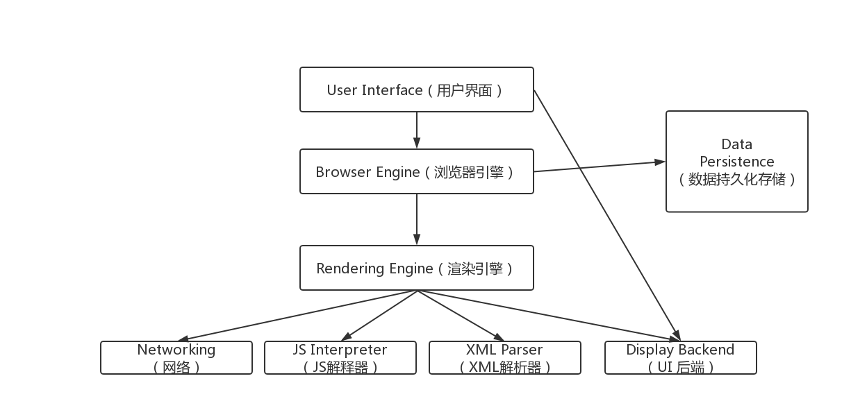 首先我们要知道浏览器的组成。我们知道不同浏览器具体实现是有不同的,但是它们设计思想是一样的,所以可以将浏览器抽象成下面的图。