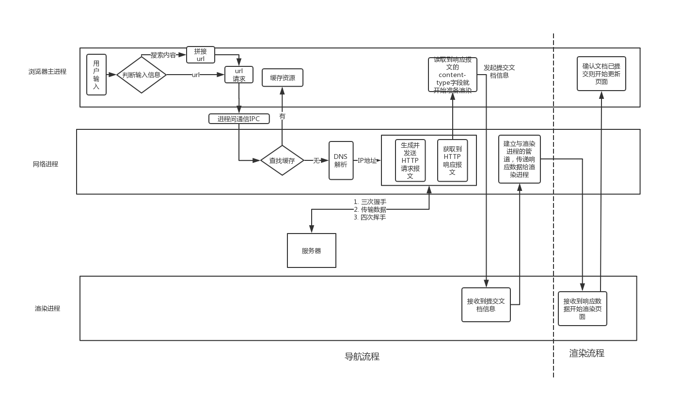 导航流程页分为用户输入过程、url请求过程、提交文档过程。